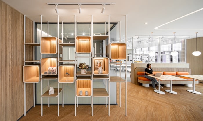 办公室不仅要代表他们的品牌,而且要提升它的品牌。由于整个工作场所需要协作工作和构思,同时还要兼作视频的合适拍摄地点,因此办公室必须美观且功能合理。办公室大厅看起来像一个咖啡馆,因为我们将他们的商店体验直接带入了他们的工作场所——这样员工就可以理解他们的日常顾客的感受,把自己放在他们的鞋子里。它融合了大地色调和色彩缤纷的口音,适合他们主要是 Z 世代劳动力的俏皮,以将自己与传统的工作方式区分开来。#办公室装修公司#