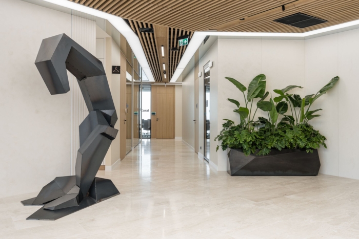 现代办公室室内设计具有美学、功能性和人体工程学设计,旨在提供灵活性,实现个人和团队工作。作为多功能空间,营造友好的氛围并促进融合,鼓励员工在混乱后返回办公室。这也适用于律师事务所的设计,其细节强加了某些解决方案,业务性质会影响空间的布局及其美学品质。该空间设有社交室和咖啡点等卫生设施,还可用于各种公司活动。反过来,它的装饰强调了这个地方的声望。