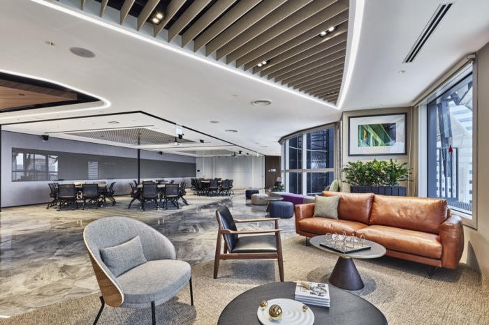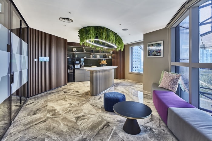 设计具有当地风情,为办公室带来“甘榜”(乡村)精神,宽敞的茶水间设有各种角落和座位,邀请员工喘口气,喝杯咖啡,进一步培养联系感。为内部消息和标注设计了一个特制的功能墙,以鼓励互动和参与。其结果是一个既关乎社区又关乎生产力的工作环境。#办公室设计装修方案#