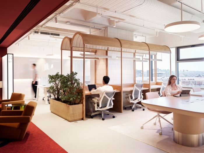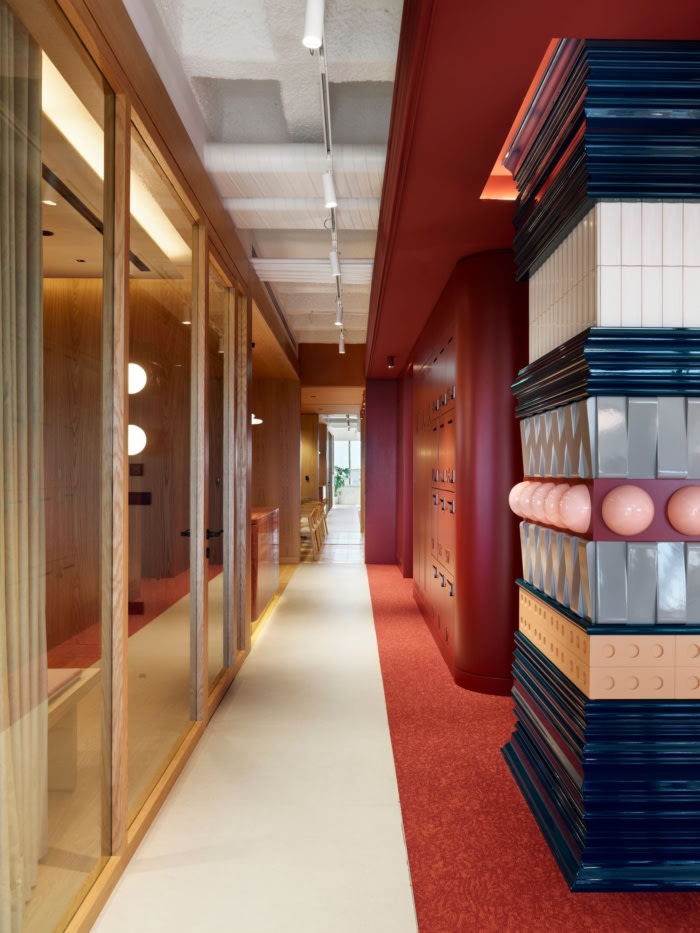 办公室内的工作空间不仅采用了根据员工需求量身定制的现代办公理念,还集成了适合混合工作模式的灵活工作空间。家具的选择体现了设计的语言,为员工保留了符合人体工程学的舒适感,反映了“精心策划的折衷主义”风格,在整个空间中协调了传统和现代元素。独特的地板材料定义了空间流线,在增强视觉美感的同时,也吸引了人们对材料选择的丰富性的关注。#办公室室内设计风格#