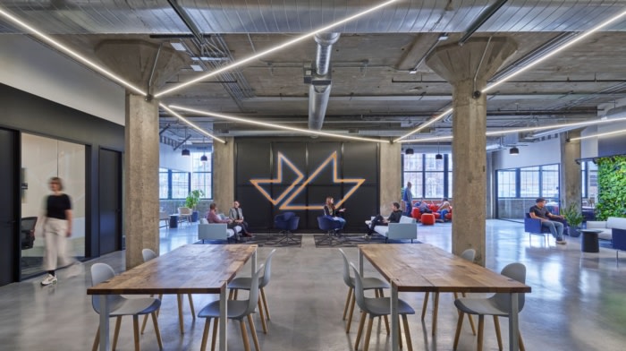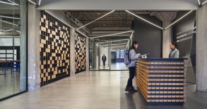该设计颂扬了历史建筑的原始元素,包括裸露的砖块和柱子,以及支持产品创新所需的工具和技术。在外观上,柱子的照明和标志性的钟楼突出了该建筑在两个社区核心中的灯塔地位。#办公楼装修#