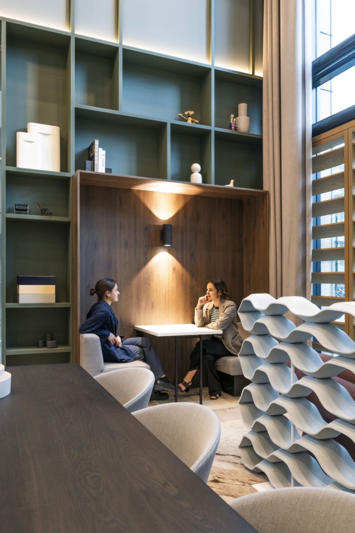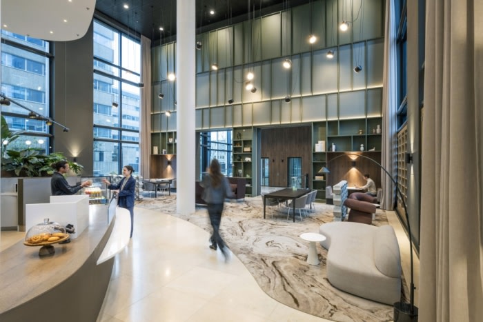 调色板温暖、自然、诱人。通过用现代设计的家具、柔软的材料和大量植物创造舒适的座位壁龛,为游客创造了亲密感。壮观的高墙设计进一步增强了这种温馨的氛围,与蒙德里安塔的建筑风格保持一致。各个区域邀请您快速开会、工作或放松。简而言之,创造了一个空间,在城市动态中创造了一种自然的宁静感。#办公楼室内装修公司#