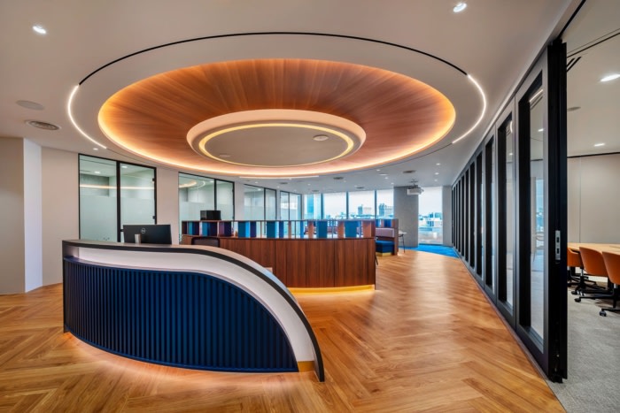 设计愿景的核心是创造一个温馨的前厅区域,在这里仔细注意颜色、饰面的选择,并提供充足的会议室,以容纳内部和外部的参与。此外,该项目还试图将CBD天际线的壮丽景色融入设计叙事中,利用这一自然背景来丰富工作空间的整体氛围。重点在于融入永恒的设计元素,如大胆的主要标志特征和亲生物风格,为空间注入连续感和视觉凝聚力。#办公室装修设计#