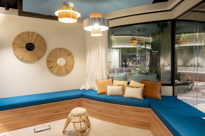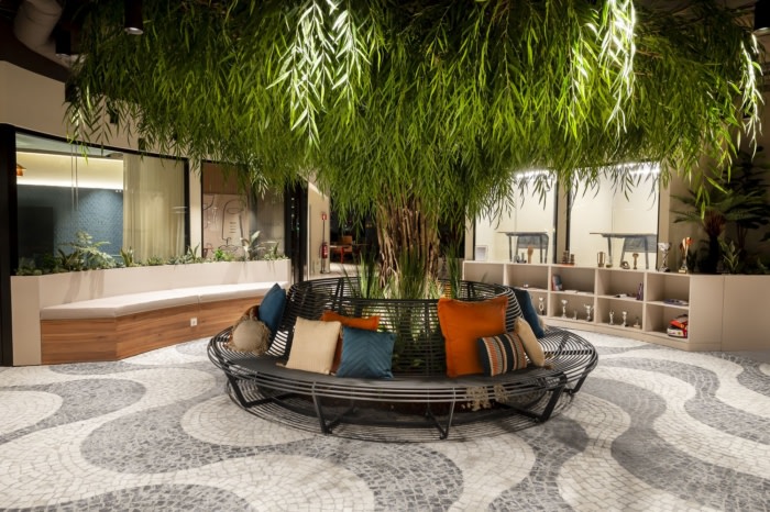 新办公室可容纳200名员工,占地约1400平方米,分为两个办公区、会议室、一个带酒吧和用餐区的休息室、几个可以举行小型会议的壁龛、一个可以复制礼堂进行大型演示的区域,甚至还有一个逃生室。在这个新空间的中心是里斯本广场的仿制品,除了瓷砖和软木外,还有一棵树,周围环绕着著名的葡萄牙鹅卵石路面。#办公室装修公司#