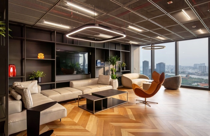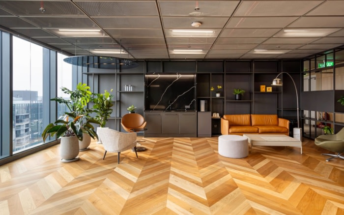 办公楼装修:采用醒目的橙色配色方案 木地板营造出豪华而精致的氛围