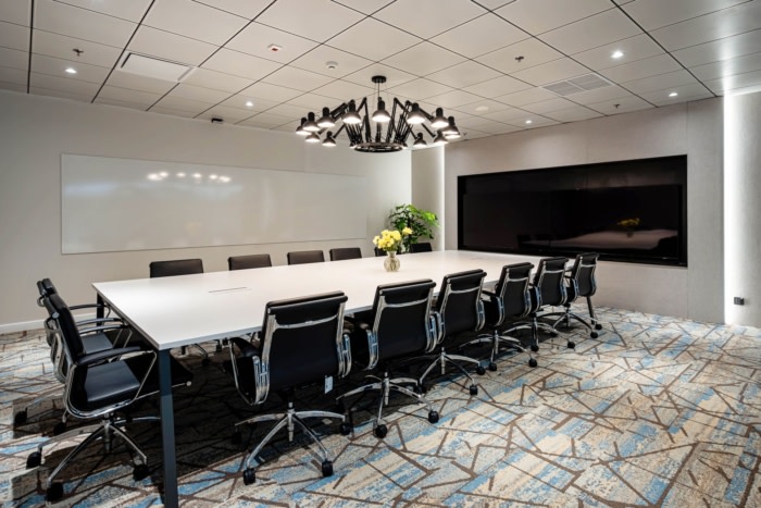 在工作区旁边,餐厅吧台由玻璃墙隔开。这种设计最大限度地减少了食物异味,同时在休息时为办公室增添了轻松的氛围。工作空间的一个显着特点是没有单独的文件柜。取而代之的是,由蒲公英设计和建造的带编号的木制文件抽屉系统排列在办公室的右墙上。这些井然有序的存储单元为更高效、更有序的办公环境做出了重大贡献。#广州办公楼装修公司#