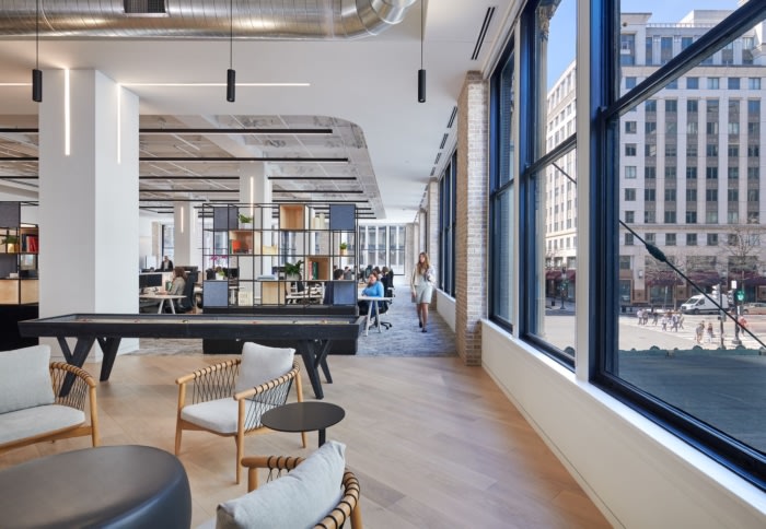 办公场地设有一面硬币墙,将放置奖章以庆祝项目胜利和参与的企业团队。新办公室以独特的方式将员工聚集在一起,并加强了公司闻名的协作文化。它还使公司更接近其所服务的社区,提供了在华盛顿特区市中心更加活跃并为城市振兴做出贡献的机会。#办公空间设计公司哪家强#