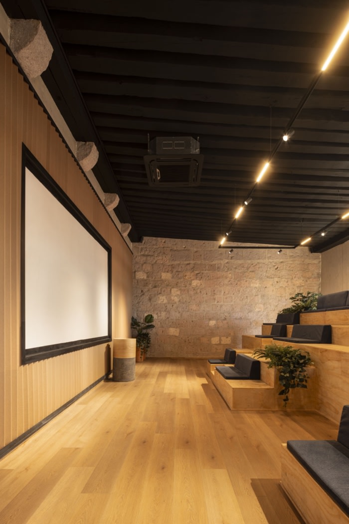 在材料选择方面,重点放在自然和区域性的饰面上,以维持项目内的温暖与和谐感,并支持当地工匠和商业。墙壁上装饰着沙色的石膏,营造出中性的背景,并点缀着树叶、家具和氛围等微妙的装饰。橡木,用天然漆完成,被突出地用于木制品,并辅以白橡木木板地板。此外,由米却肯州的工匠制作的粘土元素,如灯具、花盆和装饰品,都被深思熟虑地融入到设计中。#公司办公楼装修设计#