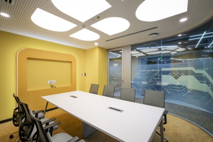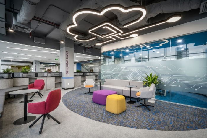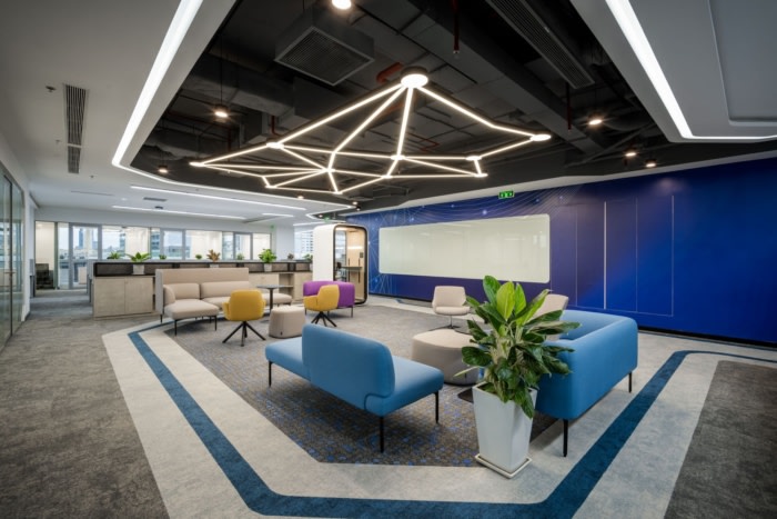 技术的生命力、演变和复杂性可以在办公空间中通过分区、照明和装饰来解释。设计强调品牌,注重从接待区开始的品牌认知度。通过钻石的棱角和闪光等特性表达出设计的灵活性,可以成为提供各种工作空间以适应不同工作方式的灵感。正如碳经历了一场变革之旅,成为一颗璀璨的宝石。#办公室设计装修公司#