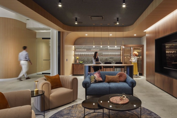 便利设施包括一个通向私人户外露台的中央咖啡厅、众多咖啡站和一个多功能休息室,白天提供图书馆氛围,晚上成为专业级品酒室,同时为集会、客户会议或视频游戏比赛和酒吧测验聚会采用了一流的演示技术。装饰风格以郁郁葱葱的景观和整个空间精心策划的艺术品为主,还有一个500加仑的咸水水族馆,在接待处迎接团队和游客。#厂房办公楼装修方案#