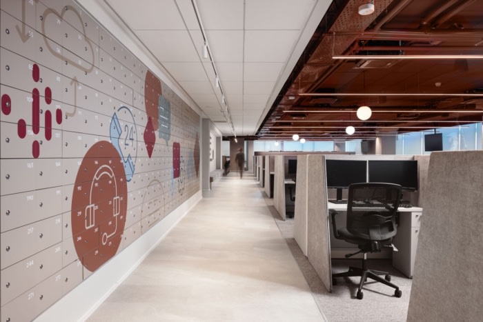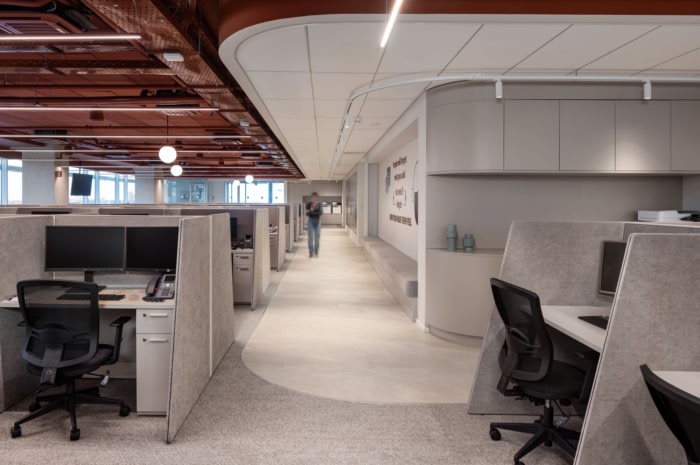 办公室和呼叫中心的设计体现了一种风格,反映了公司谦逊而稳定和坚实的企业文化。这种设计方法不仅关乎美学,还关乎封装支撑银行运营的人性和原则。整个公司的员工每天都会体验到这些价值观,因为该设计营造了一种与银行精神相一致的环境。#办公室设计装修#