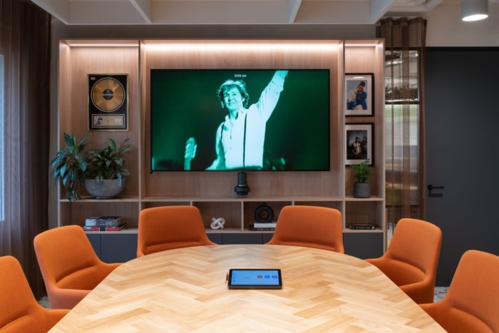录音室是办公室的核心和灵魂,隔音墙将艺术家们置于一个充满创造力和尖端设备的世界中。温暖的色调和舒适的家具相融合,创造出舒适、协作和创意的空间,使人们能够创新和激发灵感。大楼电梯的中心位置在办公室中形成了一个分隔线,这给设计带来了独特的挑战。创新的解决方案是战略性地设计接待区,以弥合电梯入口两侧之间的空隙,和谐地连接两个空间。#办公楼设计装修方案#