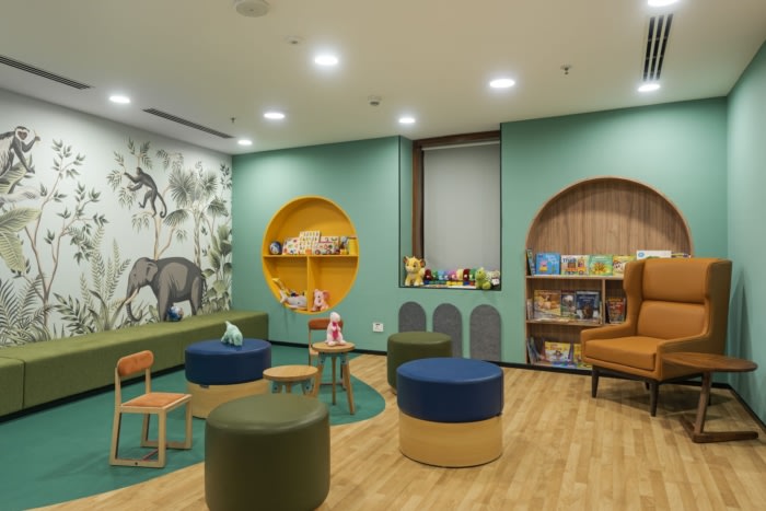 不可否认,重新设计的核心是商业花园。郁郁葱葱的绿色植物覆盖着每个工作楼层,模糊了室内和室外之间的界限。这不仅仅是关于美学;这是关于促进健康和正念的。花园兼作合作的市政厅,融合了自然元素,营造出宁静的氛围。它战略性地放置在每层楼的尽头,提供各种座位选择——秋千和有机形状的桌子——满足不同的喜好并促进联系。这种设计独创性鼓励了来自不同部门的团队之间的互动,激发了推动创新的对话。#专业办公楼装修公司#
