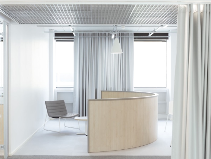 为了满足客户对各种会议空间的要求,该设计包括一系列不同大小的会议区域,从用于通话的小型私人房间到中型和大型会议室。该项目的另一个显著特点是灵活的实验室,它可以从一个简单的会议室转变为实验和展览的空间。#办公室室内装修#