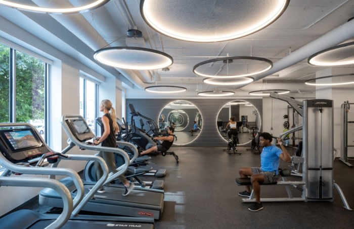 落地玻璃包装增强了材料的亲生物性,并提供了顶层公寓全木内饰和裸露天花板的街景。连接的楼梯、抛光的混凝土地板和近 4,000 平方英尺的互联户外便利设施空间有助于在设计开发开始之前就吸引到知名租户。#办公楼装修#