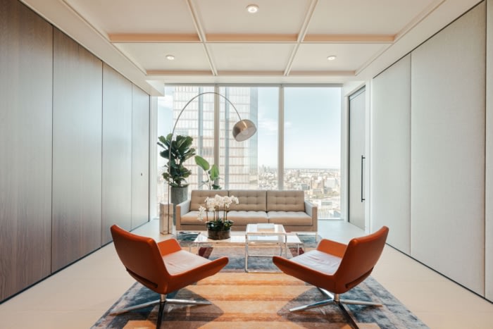 大型会议套房是办公室的中心,无论是字面上还是比喻上。在他们所从事的工作类型需要的环境中,到处都是独立的办公室,只有 18 人在开放式地板上工作,会议套房拥有完全灵活的墙壁,兼作将人们聚集在一起的社交和活动空间。茶点和接待区彼此遵循相同的极简主义语言,配有木材细节以创造联系,瓷砖上点缀着色彩,蓝绿色喷涂服务将其与办公室的其他部分区分开来。#办公室室内装修公司#