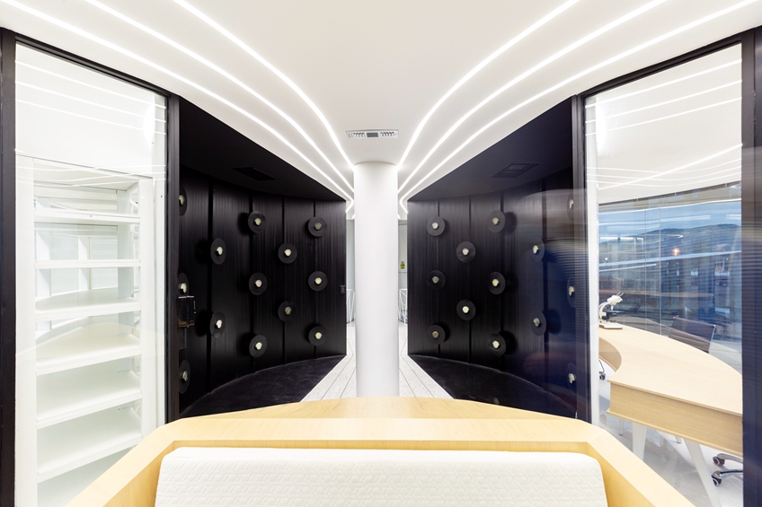 休息区是创意孵化的地方。在这里一张沙发朝向山谷的美丽景色。山的背景是灵感的元素和意识的尺度。在实验室这边,对菌株进行分析和处理,同时在另一边留出储存空间。