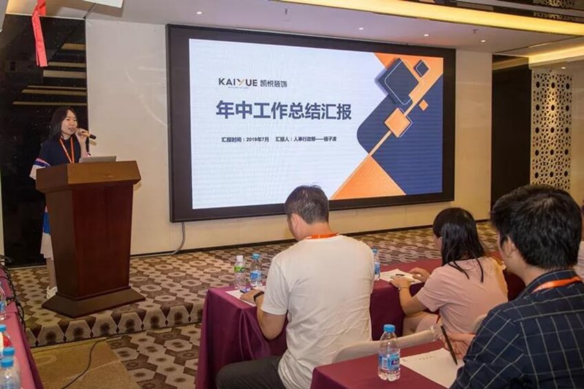 019年7月6日,凯悦装饰一年一度的年中总结大会在广州顺利召开,我们对已过去的上半年工作进行总结,对刚开始的下半年进行有序的规划,统一目标,统一认知,今年的会议主题将围绕”精准发力 共创品牌 成就你我“进行,精准发力,让行动更有效。