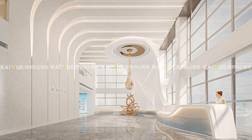 旭妆生物总部办公楼设计与施工由凯悦装饰承接,这不仅是一次办公空间的升级,更是一场关于“光”与“生命”的空间叙事。我们以 “旭日东升” 为设计灵魂,让企业“照亮世界每一个角落”的宏愿,在建筑中具象生长。