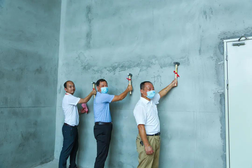 金锤声铿锵有力,势头高涨。伴随着欢快喜庆的氛围,佛朗斯股份董事长进行了敲墙仪式,现场掌声四起,辛勤的努力终于开出了鲜花,新总部办公大楼装修的启动,预示着佛朗斯新的征途,为下一个辉煌奠定坚实的发展基础。