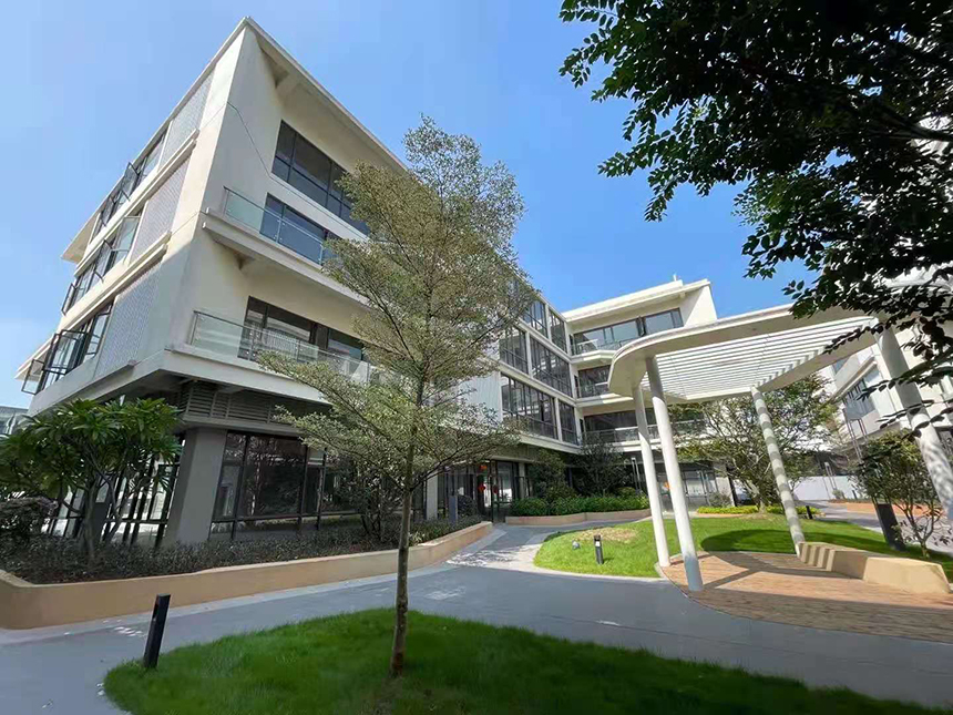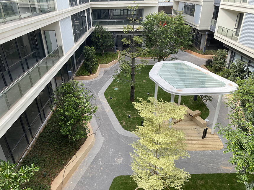办公楼外围环境优美宁静,绿化面积大,现代化元素在办公楼建筑外观呈现,期待80天后办公楼装修效果。