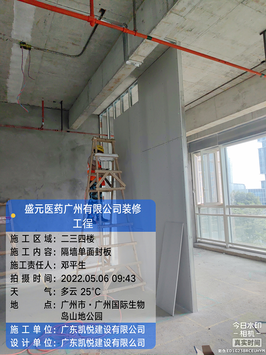 喜报!凯悦建设签约盛元医药广州有限公司办公室装修工程项目 日期:2022-5-13 10:22:01 人气:378 喜报!凯悦建设签约盛元医药广州有限公司办公室装修工程项目,办公室位于广州国际生物岛,总体装修面积约3000㎡,目前已经开始施工作业。项目由凯悦建设团队定制设计方案,并出具详细可行的施工图纸,在项目开工前,甲乙双方进行现场技术交底确认,办公室装修完工效果敬请关注凯悦建设官方发布。办公室原貌办公室装修效果图(部分)施工进度日报 上一篇: 再牵手广州市巧美化妆品有限公司 又增1200平办公室装修项目 下一篇: 喜讯丨唐人建设新办公室装修项目完工验收