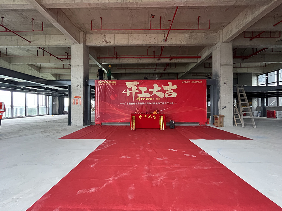 喜讯丨盈鑫化妆品有限公司办公室装修?项目今天开工 日期:2025-5-7 17:44:12 人气:158 良辰吉日,广东盈鑫化妆品有限公司办公室装修项目今天开工,面积约2000平方米,装修工程由凯悦装饰承接,工期约60天。 上一篇: 伟翔环保广州中心办公楼装修?项目开工大吉 下一篇: 祝贺?唯康教育办公楼装修开工大吉顺顺利利